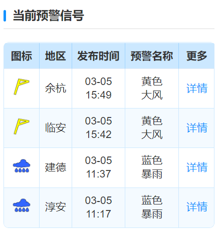 (杭州市气象台3月5日15时发布)