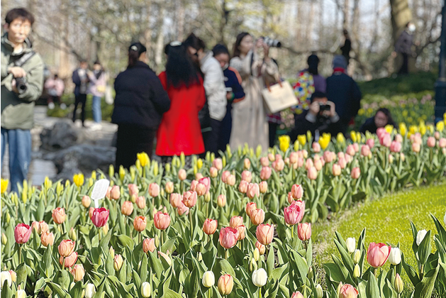 很多人关心的郁金香们开得如何了?杭州凤凰山管理处太子湾郁金香养护大师工作室领衔人詹旭亮介绍,今年共引进各类种球约40万颗,种植面积约8000平方米。种植区域包含望山坪、逍遥坡、悠然亭、玫瑰园、手拉手雕像区块、主河湾两侧等,有郁金香、洋水仙、葡萄风信子、银莲花等品种。