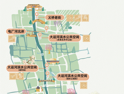 早春绽放的樱花烂漫多情,经过多年提升美化,运河边增加了不少种类,有早樱、晚樱,还有别具特色的垂枝樱。适合的观赏点有:早樱——大运河滨水公共空间(音乐公园段)、大运河滨水公共空间(未来艺术中心段)、义桥老街;晚樱——义桥老街;垂枝樱——小河直街、义桥老街、盛运公园。