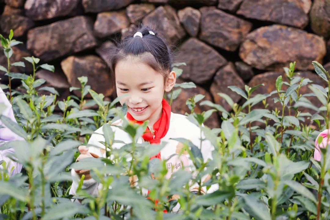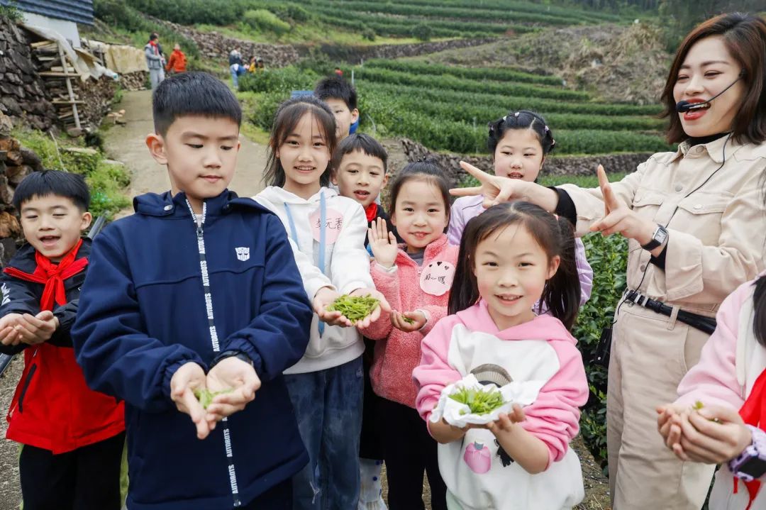 孩子们探索的脚步迈入了楼塔镇大同一村茶山湾的高山茶园,他们化身小茶农,穿梭于茶树间,小心翼翼地摘下嫩芽,不时捧起一把还沾着露珠的青茶与小伙伴分享收获,鼻尖轻嗅着一丝丝兰花的清香。