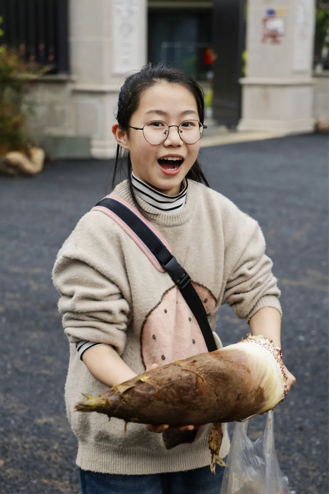“这也太大了吧!”“我都快要抱不动啦!”自己亲手挖掘的劳动果实总是格外喜人。孩子们举着、抱着挖来的大笋,劳动的疲惫似乎都烟消云散,留下的只有满满的成就感。