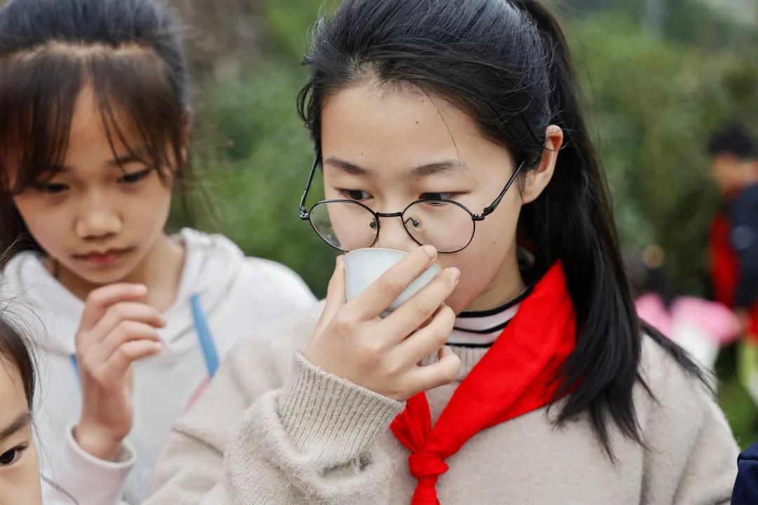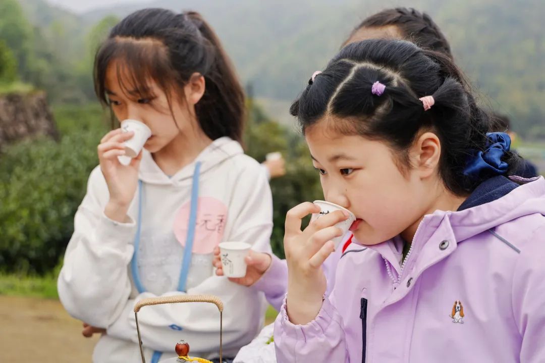 茶汤清澈见底、茶味清冽回甘,小心翼翼地接过茶杯,孩子们细细品味着专属于高山茶的鲜醇滋味。