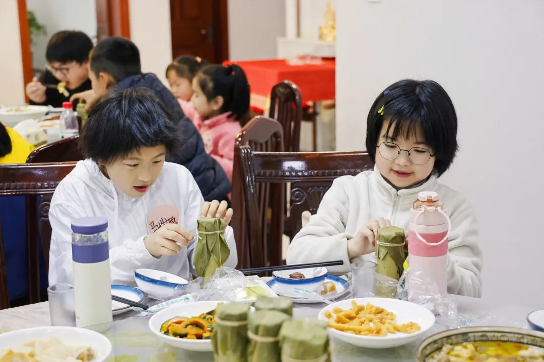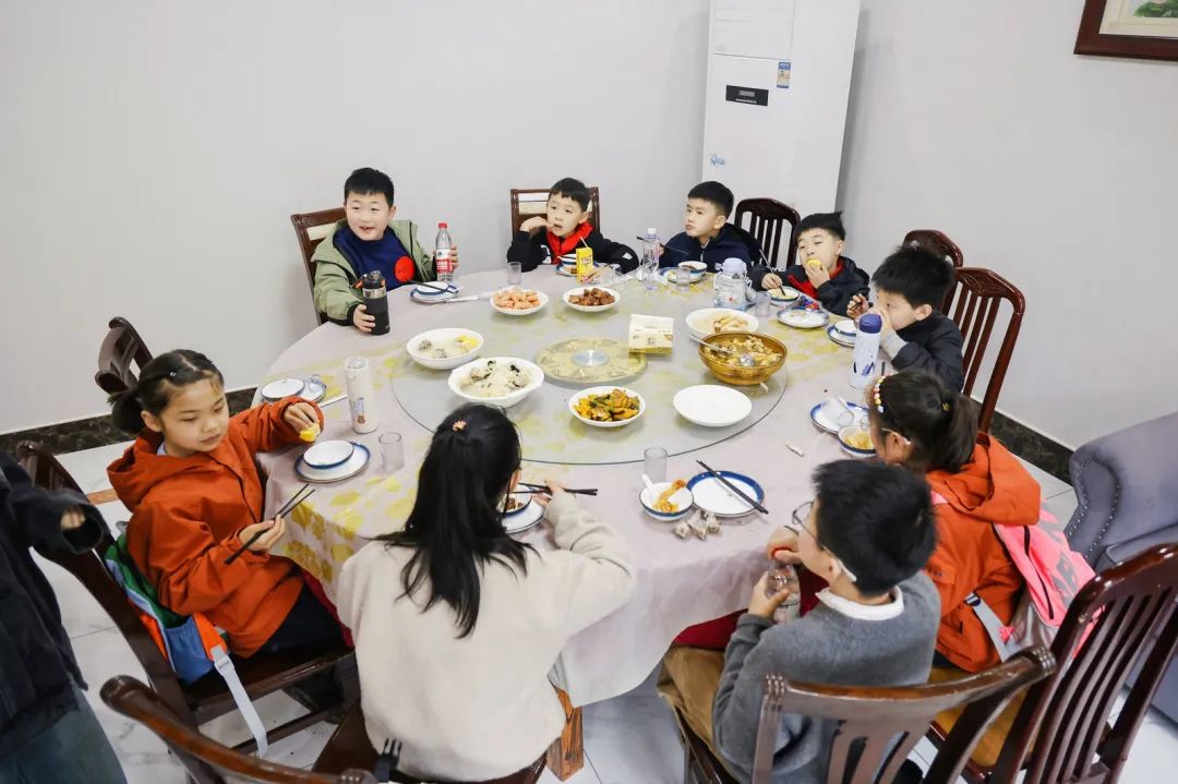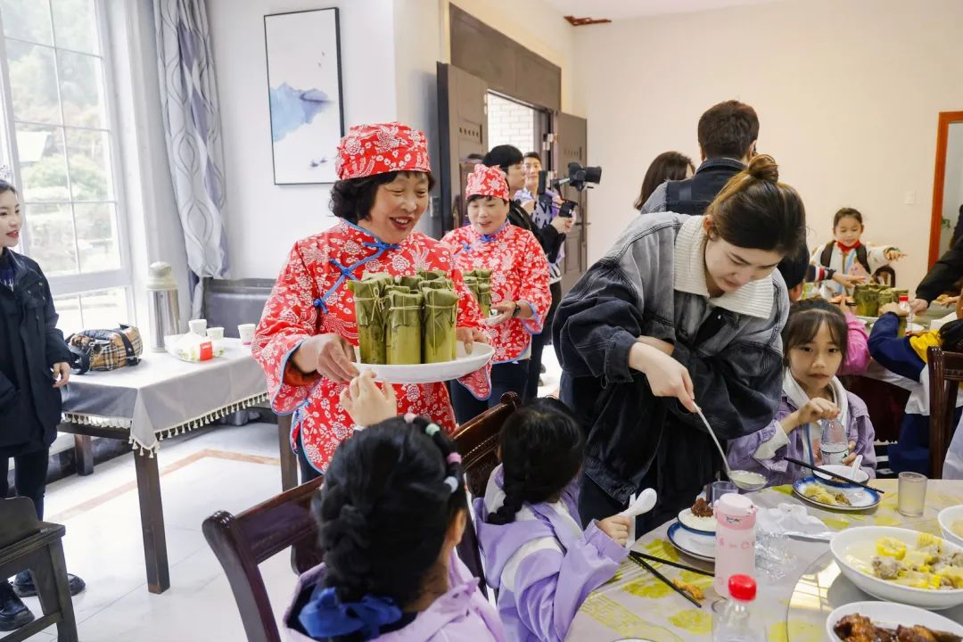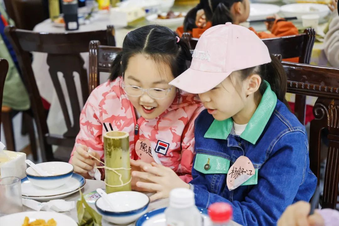 除了春笋,饭桌上还有琳琅满目的“春菜”,如农家三鲜、咸肉炖鲜笋、菌菇土鸡煲等,天然的食材烹调出自然的鲜美。亲手制作的美食总是格外香甜,孩子们吃得一个比一个欢。