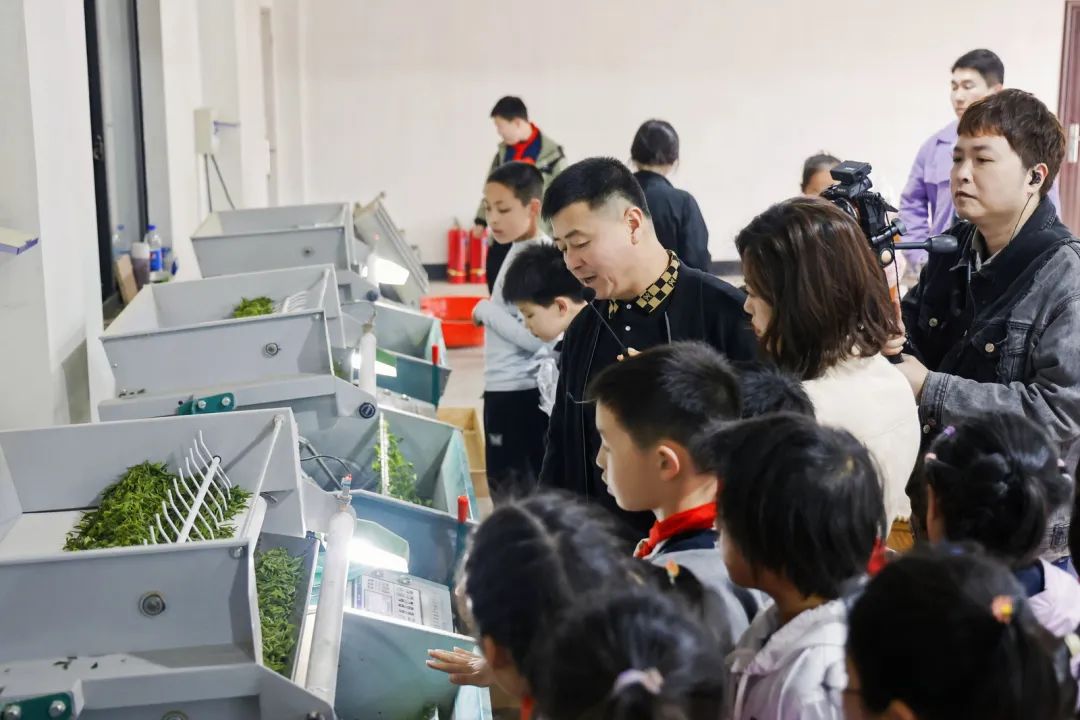 孩子们带着疑问走进共富茶房,探寻茶叶从地头“走进”杯中的过程。