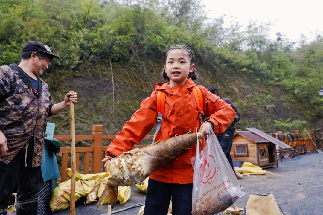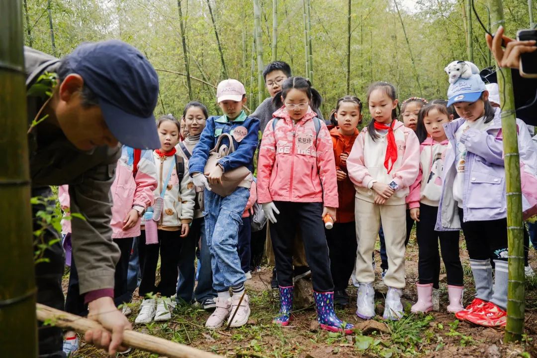 如春笋一般活力十足的孩子们,在楼塔的第一站来到了雪环桥头村,他们在此探秘“竹子的一生”。