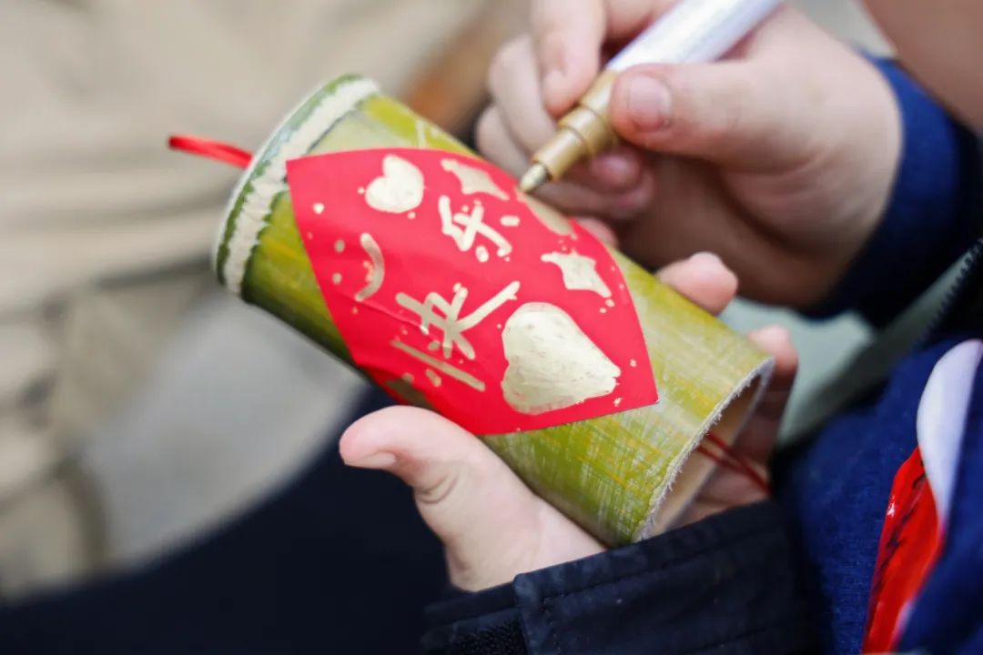 经过指导,孩子们有模有样地在竹筒上加以描绘、装饰,希望将祝福借由竹风铃,送给自己在乎的人。