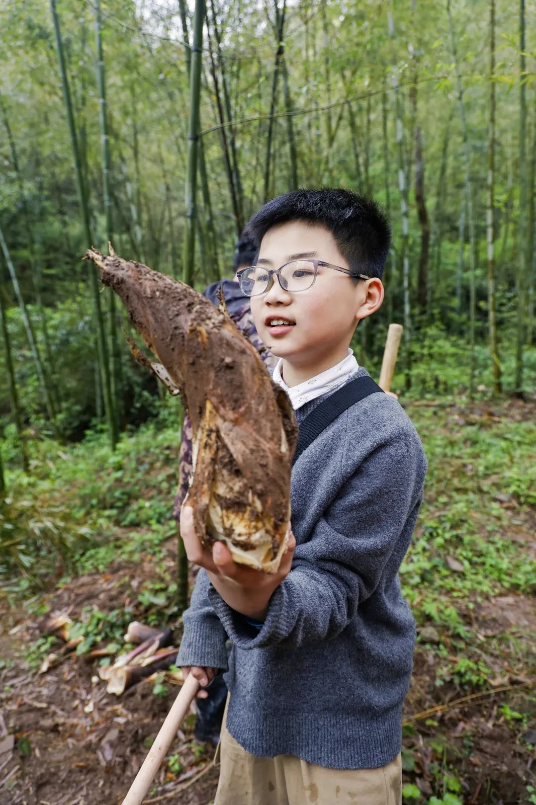 纸上得来终觉浅,积累了一定认识后,便是令人兴奋的动手挖笋环节,孩子们运用自己刚学到的知识认真地在竹林中寻觅着。