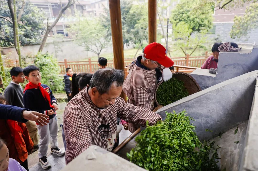 在炒茶车间,负责人何建龙向孩子们介绍,茶园全部施行有机肥培育,产出的茶叶自然具有原生态绿色品质,“茶山湾”牌高山有机生态好茶便是在这里诞生。