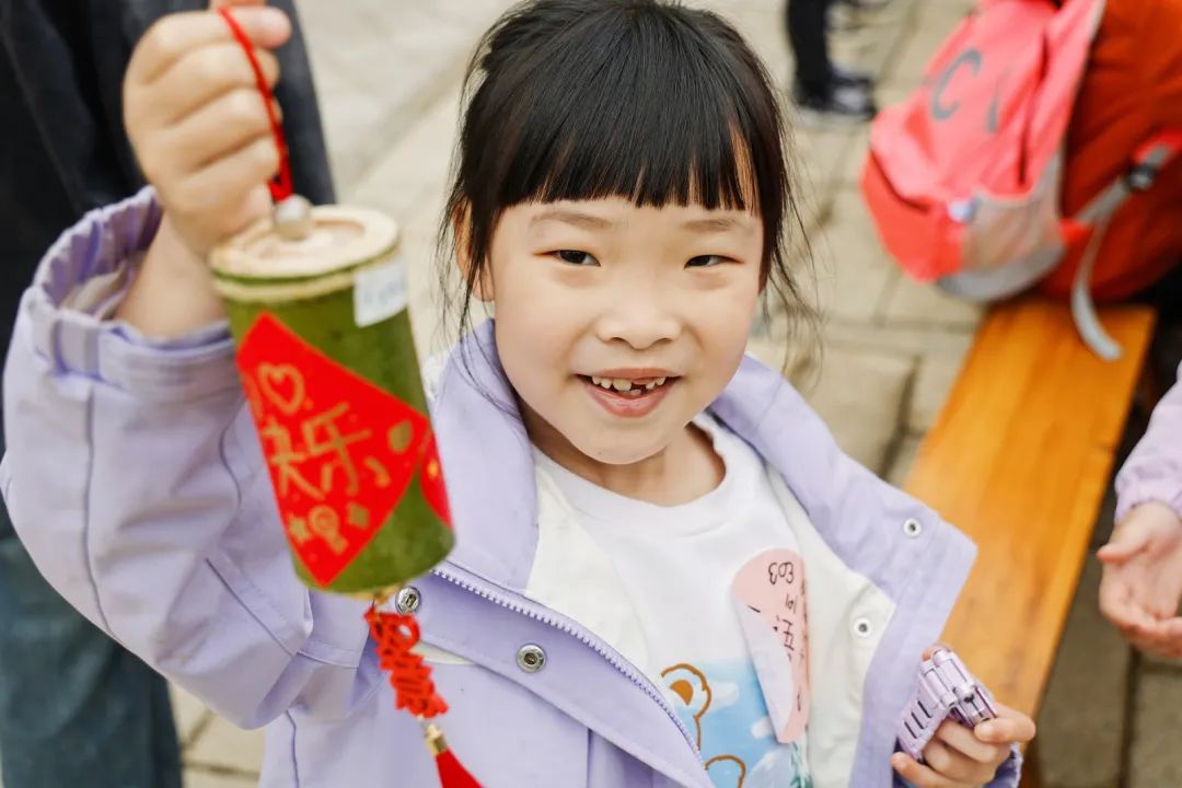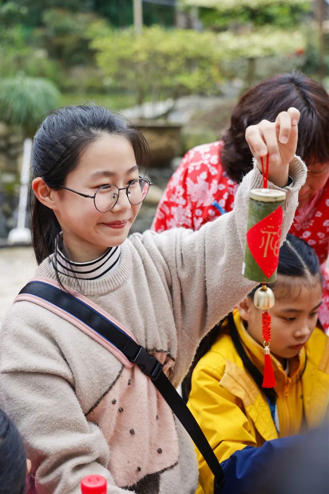 接过珍贵的伴手礼——“楼塔小罐茶”,一天的“上春山”之旅来到了尾声,孩子们依依不舍地踏上了返程的大巴。但他们随身携带的“楼塔小罐茶”和竹风铃,替他们留住了这一天的春景与春味。