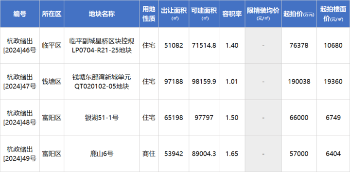 4月12日上午,杭州马不停蹄挂牌第五批宅地,4宗低密宅地上架,均位于不限房价区域,竞拍方式依然为“价高者得”,将于5月14日出让。