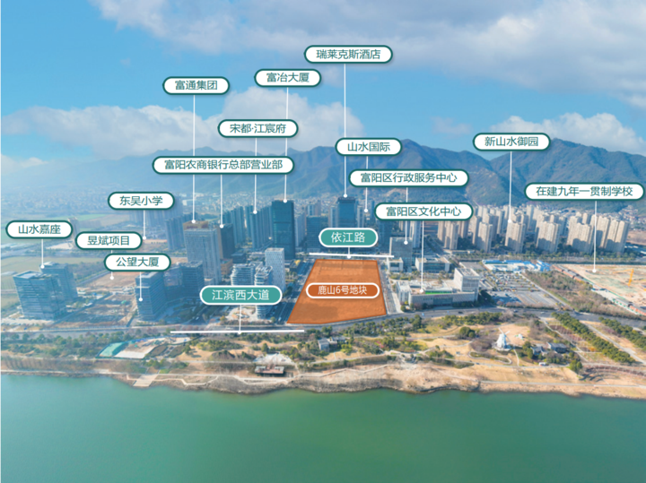 鹿山新区核心挂牌的鹿山6号地块,与富阳行政服务中心和文化中心一路之隔,西沿依江路,东邻沿江绿色景观带,坐拥一线富春江景。