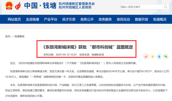 值得注意的是,就在本月初,《杭州市钱塘区东部湾新城单元详细规划》(下文简称“《东部湾新城详规》”)获市人民政府正式批复同意。这也意味着,下沙沿江要翻开新篇章了。