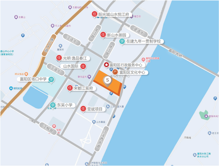 作为富阳行政服务中心所在地,地块旁是富阳的总部楼宇商务区,比如海正药业、富通集团、农商银行总部等,周边公共服务功能完善,有东吴小学、场口中学、在建九年一贯制学校等教育配套;商业有鹿山时代,还有富春博物馆、美术馆、档案馆等文化配套,发展潜力看好。