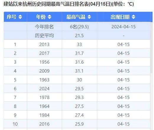 昨天白天的最高气温29.5度,加上有阳光的加持,整体感觉闷热。4月15日历史同期最高气温33度,出现在2013年,昨天的29.5度排历史第六。