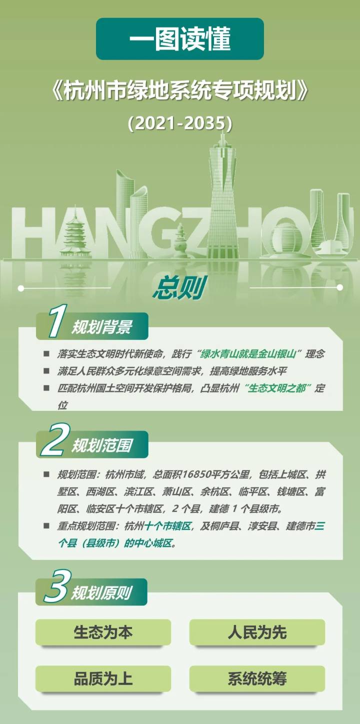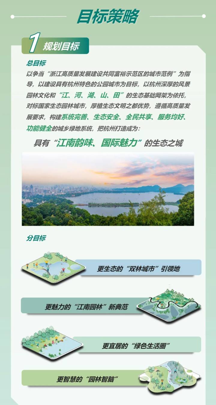 近日,杭州出台了《杭州市绿地系统专项规划(2021-2035年)》,提出了“到2035年,杭州人均公园绿地面积不低于17平方米、公园绿地服务半径覆盖率不低于95%、绿化覆盖率不低于43%”的目标。