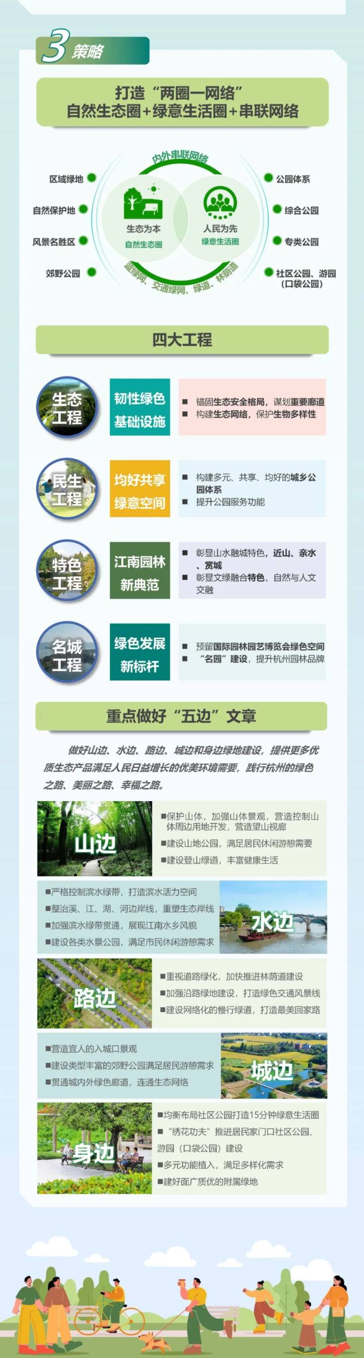 同时,规划还提出了打造多样化、可游憩的绿色廊道体系,建设“水绿相伴、路绿相随”的带状绿化,把公园、景点串珠成链,至2035年,杭州绿道总长超过5000公里。