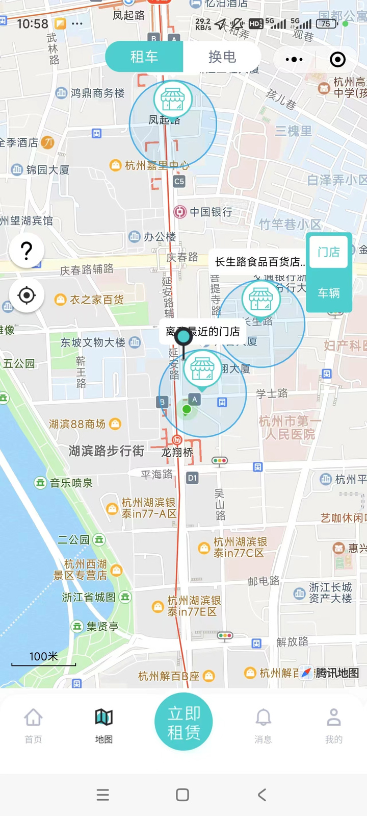 小程序中还提供了店铺店址,还车只要在店铺1公里范围内均可。