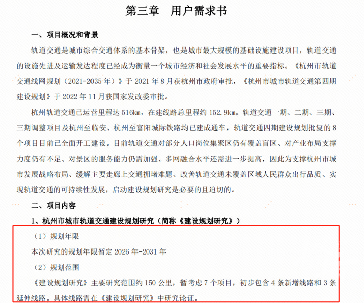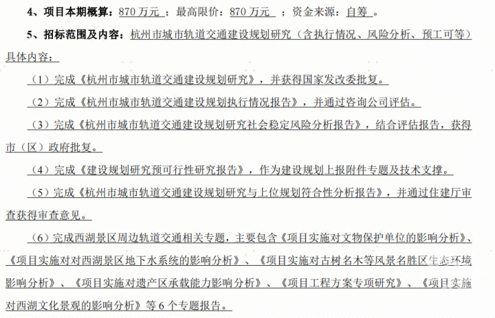 先来看看《杭州市城市轨道交通建设规划研究(含执行情况、风险分析、预工可等)》这份招标文件。