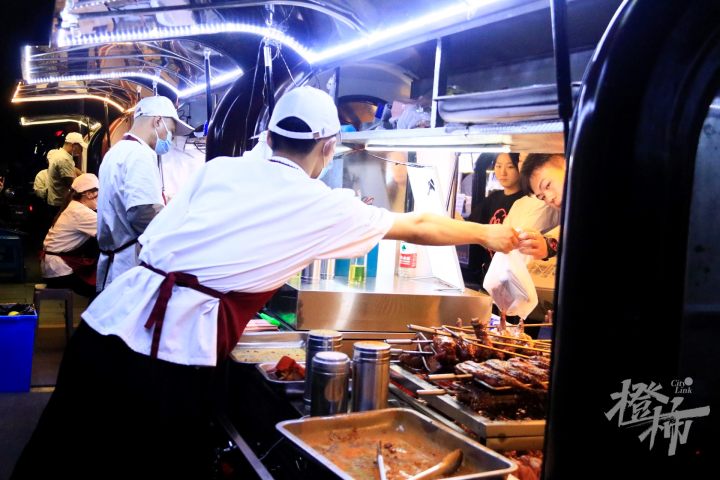 在学校周边的空地上,美食的香味伴随习习晚风向四周扩散,37辆惠民餐车闪烁的灯火汇聚成了一幅多彩的夜生活画卷。