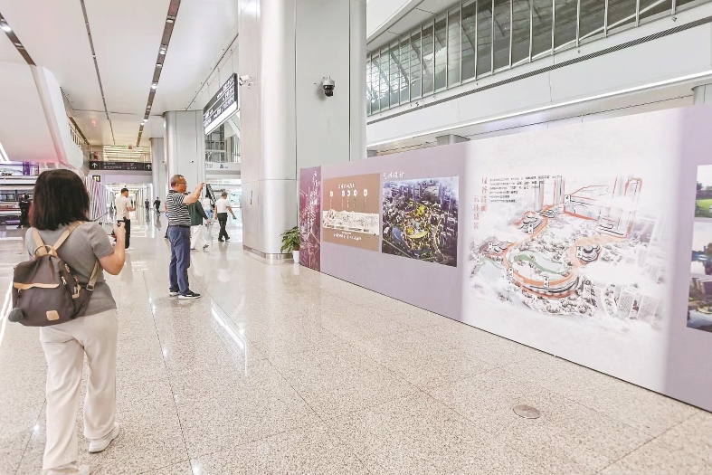 在云门公园设计方案展杭州西站分会场,来往旅客纷纷驻足观看。