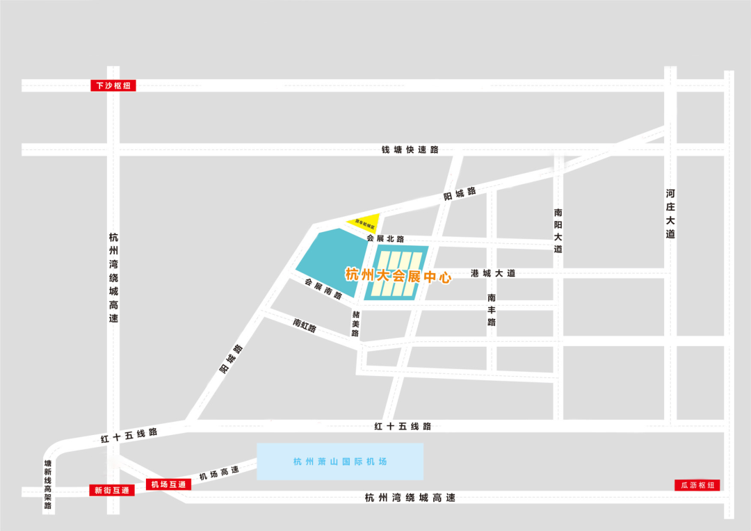 城区方向:钱塘快速路→南阳大道→阳城路→赭美路→会展北路,5号门进入场馆。