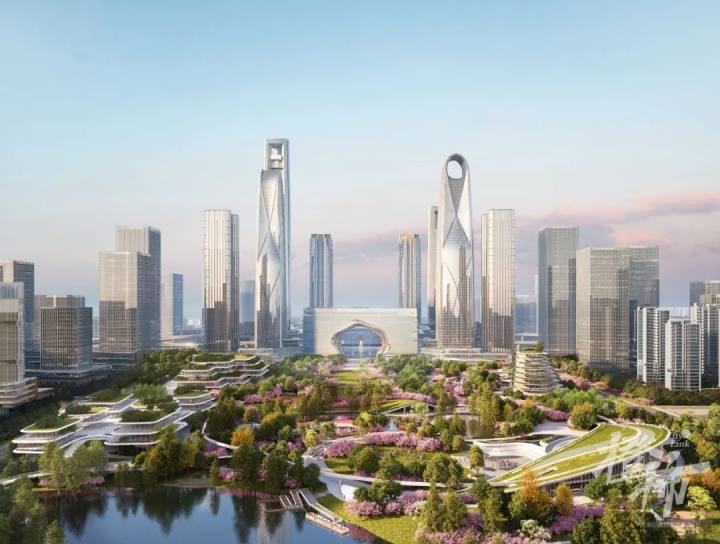 不久的将来,当你坐高铁来到杭州西站,出站后将看见一个绿意盎然的城市公园,穿过恢宏的云门,你可以看到草坪、小溪、花海、骑行绿道……可能乐队演出、艺术展览也正在公园里举行,在这里可以感受到满满的都市松弛感,而当你抬头望向远处,则是截然不同的场景,林立的摩天大楼将出现的眼前,杭州第二高楼就位于云门公园旁。