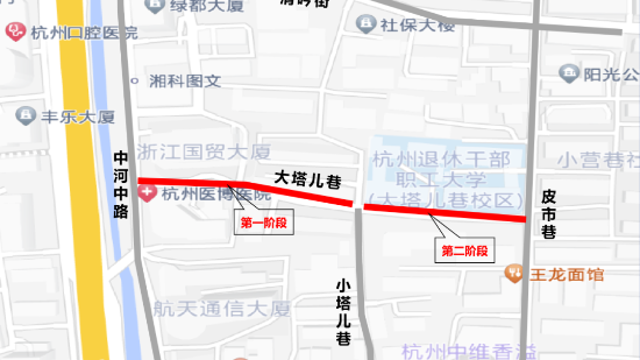 一、2024年7月27日至8月30日,大塔儿巷(中河中路—皮市巷)将占用部分道路空间实施逐段封闭施工。施工期间,按照大塔儿巷(中河中路—小塔儿巷)、大塔儿巷(小塔儿巷—皮市巷)进行逐段封闭施工,每段施工时间为18天,施工路段禁止机动车通行,受限机动车请提前绕行清吟街、解放路等周边道路。