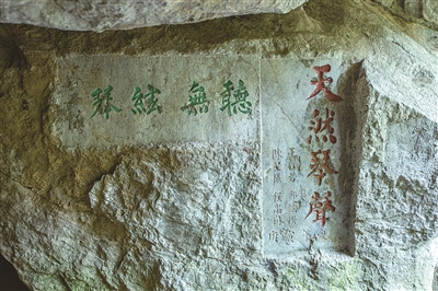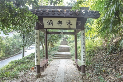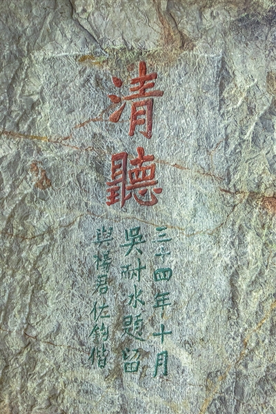 1922年,国画大师张大千的哥哥,以画虎闻名的张善孖(zī)偕兄弟来水乐洞游玩,留下题刻:“汉安张虎痴及其弟丽诚、文修、大千、君绶五人来游于此。”几年之后,书画鉴藏名家吴湖帆也携情人施畹秋游水乐洞,后作诗咏之:“空留别院玲珑,一湾流水,听沧海、明珠溅雨。”