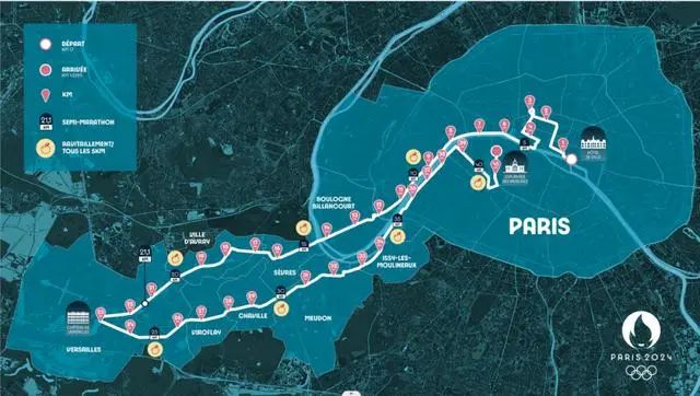 巴黎奥运会马拉松比赛线路。图源:巴黎奥运会官网