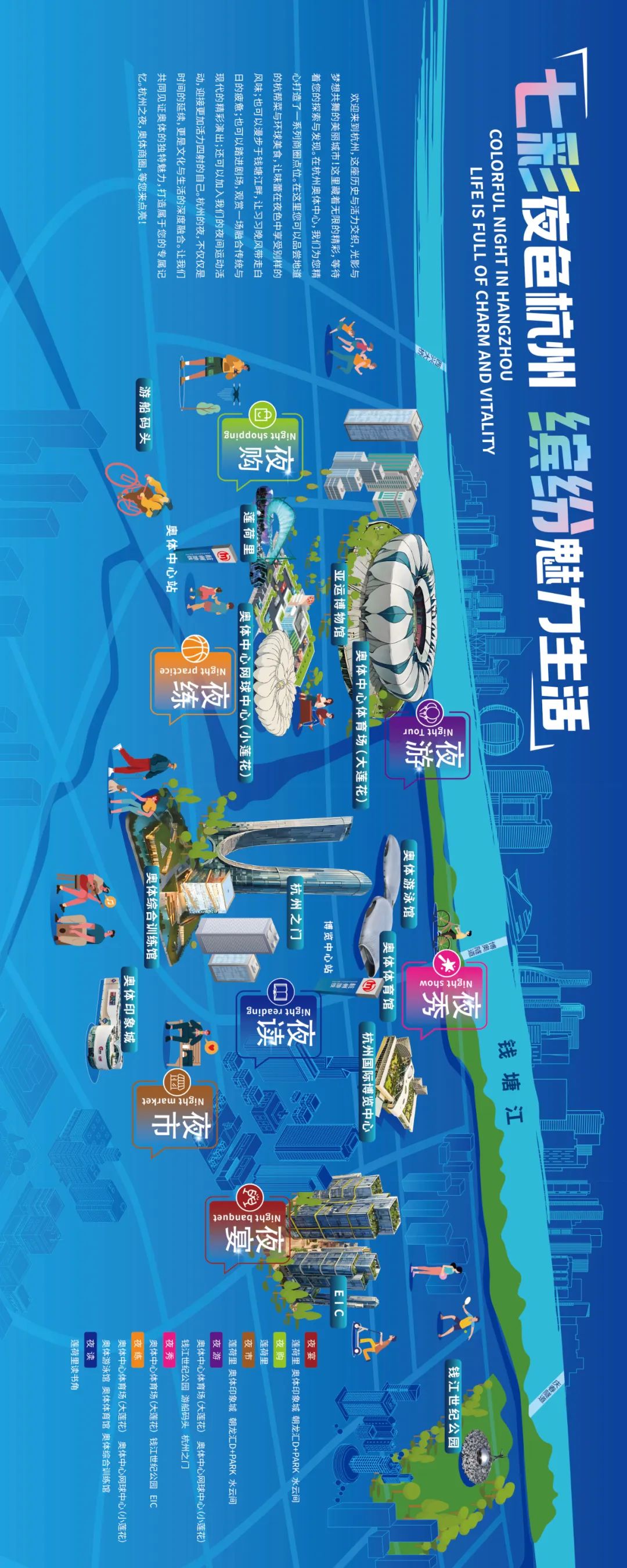 同时,为了全面展示杭州夜经济的独特魅力,杭州市还推出了“七彩夜杭州”一张图。该图围绕“夜宴、夜购、夜市、夜游、夜秀、夜练、夜读”七大主题,生动描绘了奥体商圈夜间经济的多彩画卷。
