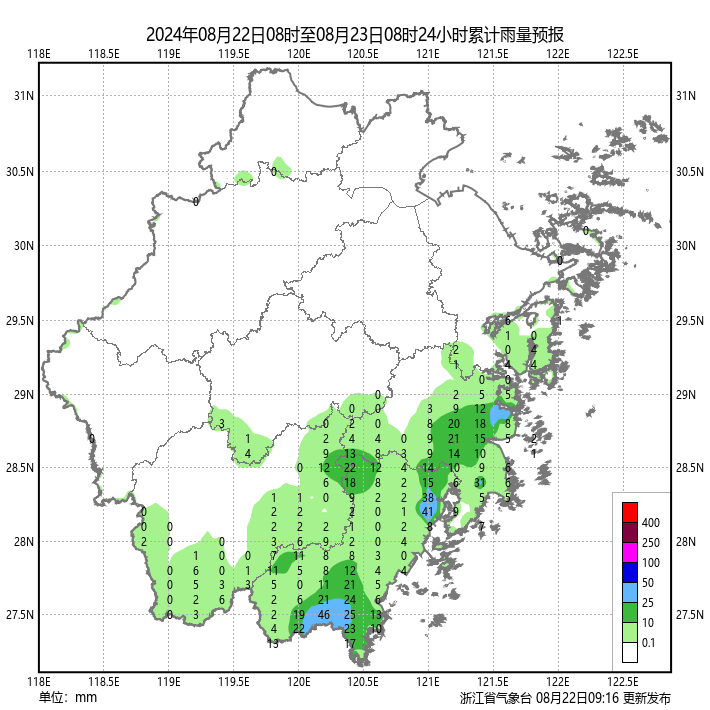 浙江今天的系统性降水的范围主要在沿海地区,其它地区为分散性降水,会在局部现身。被压制了的气温,今天开始转入回升通道,预计25日会来到本轮升温过程的顶峰,最高气温可达38℃甚至39℃。