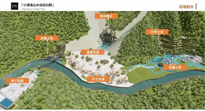 根据规划设计,小源溪山水运动公园将要打造成华东知名的微度假目的地、国家级沉浸式演出基地以及超级IP水乐园。