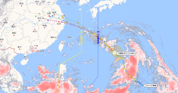 今年第13号台风“贝碧嘉”(强热带风暴级)的中心今天(9月13日)11时位于东经136.3°、北纬22.5°,中心气压982百帕,近中心最大风力10级。预计“贝碧嘉”将以每小时30~35公里的速度向西北方向快速移动,强度逐渐增强,最大强度可达强台风级,14日夜里进入东海东部海面,之后向我省沿海靠近。
