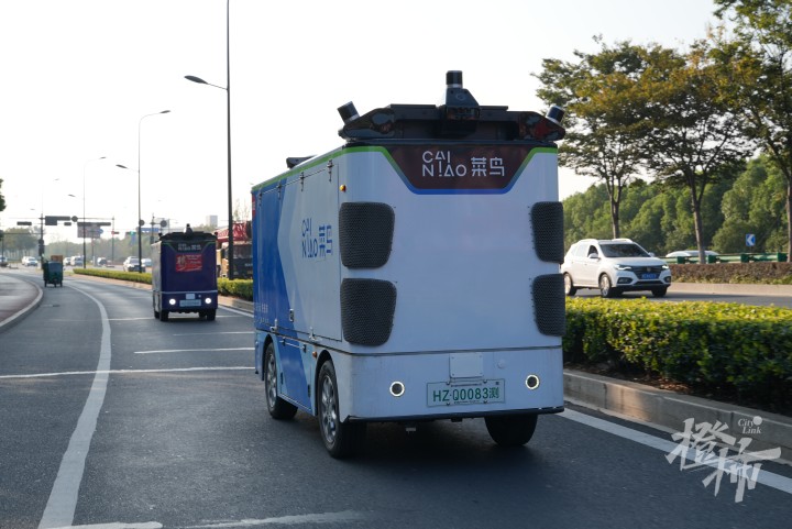 距离这个网点12公里外的菜鸟驿站(杭州未来城三期),站长王骞正站在门口,等着无人车送来包裹。双11开始后,平日里上午两趟、下午一趟的节奏,变成了全天候的往返。