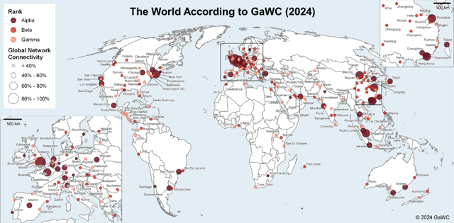 这些城市,本身就是Beta城市,在全球与意大利罗马、美国达拉斯、西班牙巴塞罗那、越南胡志明市、印尼马尼拉处于同一梯队。