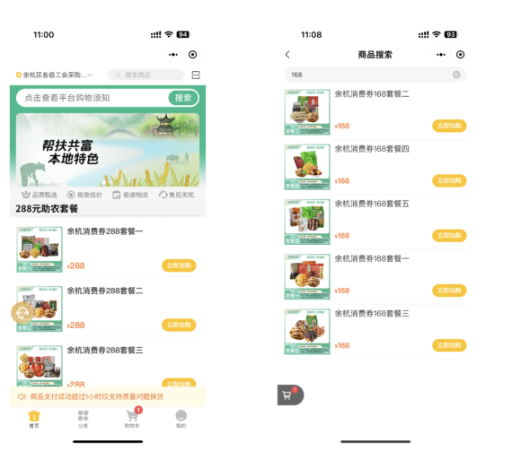 工会会员在“余杭区各级工会采购优质农副产品平台”小程序中,选择相应面额消费券的农副产品套餐礼包即可,金额超出部分需自行承担。
