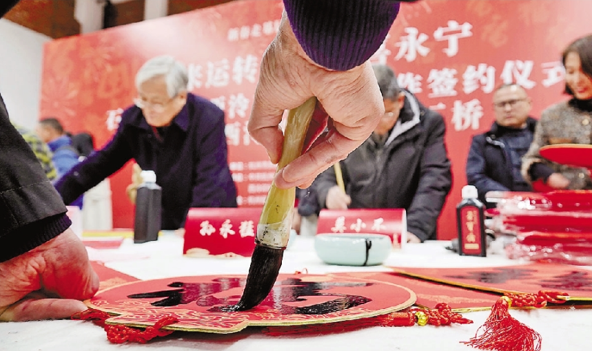 昨日,2025“西泠春运会”的“新春走基层 文化进万家”系列活动,来到拱墅区石桥街道经纬天地创意产业园。西泠印社社员们挥毫泼墨,现场书写春联、福字,为石桥居民和创业者送上美好的新春祝福,同时还推出“欢喜永宁——节气里的运河记忆书画印作品展”,展出西泠印社社员精心创作的二十四节气篆刻、运河记忆国画、欢喜永宁主题书法等作品。