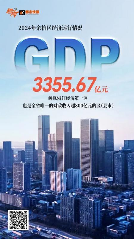 1月22日,余杭公布2024年发展“成绩单”:据初步核算,2024年全区实现地区生产总值3355.67亿元,按不变价格计算,增长6.0%,总量再攀高峰,稳居全省第一,增速全市第一。