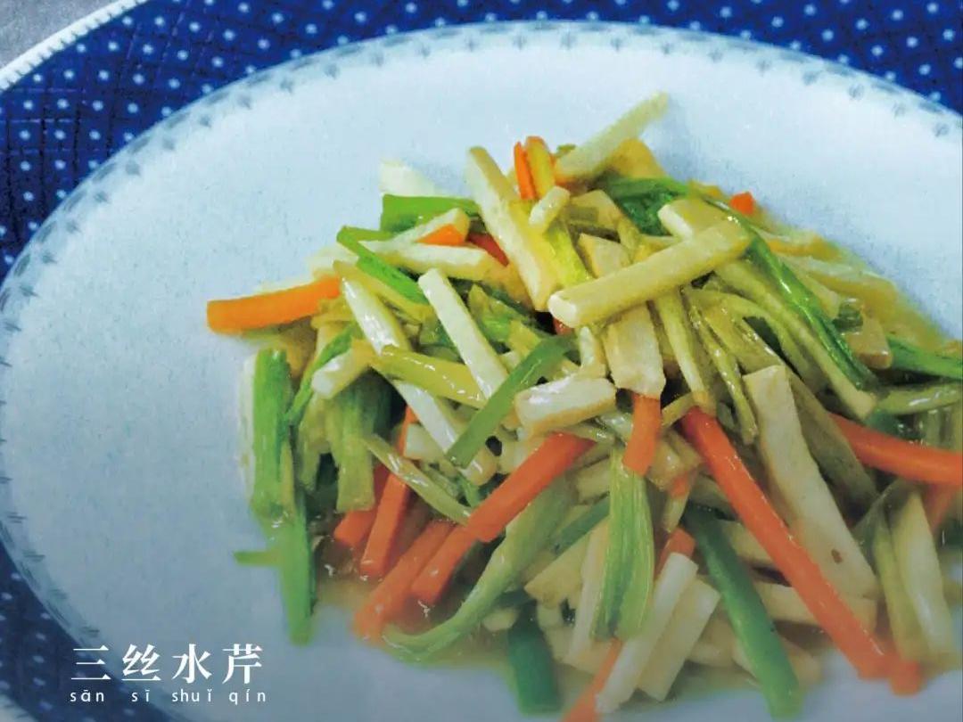 水芹菜、冬笋丝、香干丝、胡萝卜丝