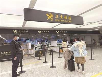 问了旁边的工作人员才知道,入境通道里都安装了一体化智能闸机,功能包括了体温检测、旅客手提行李的预检,以及人脸抓拍等功能。以前旅客要通过入境检疫和行李监管两道检查,现在走过这个闸机就都完成了。