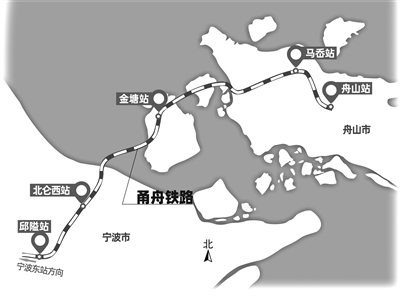甬舟铁路以宁波东站为起点,经宁波鄞州区、北仑区,舟山金塘岛、册子岛、富翅岛,终于舟山定海。设计时速250公里,正线长76.4公里,共设7个站,新建北仑西、金塘、马岙、舟山4座车站,改造宁波东、邱隘、云龙3座既有站。