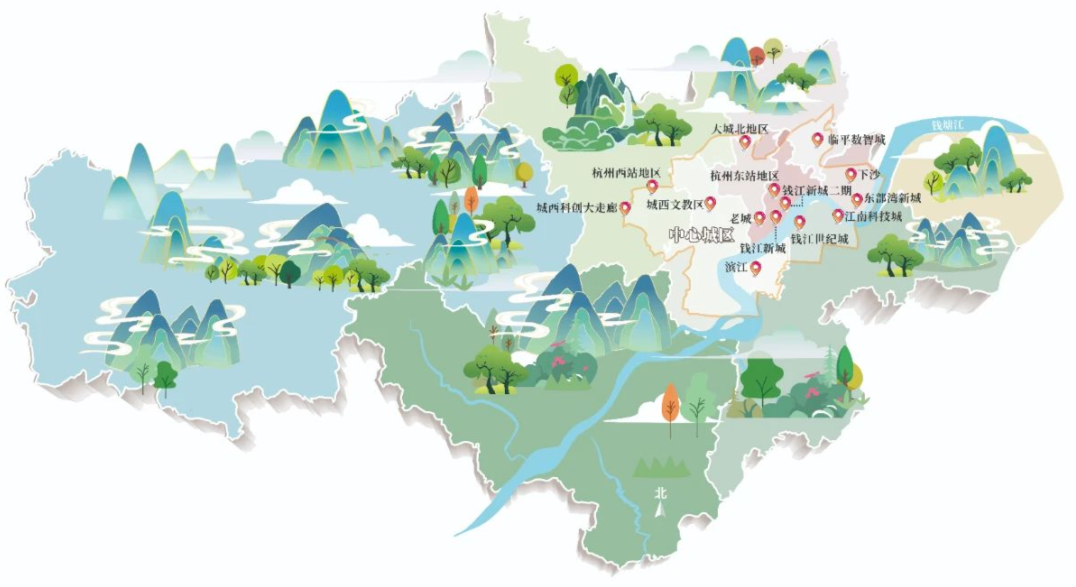 关心杭州城市发展的市民可能都知道,杭州将构建“一主六辅三城、三江两脉八带”的多中心、网络化、组团式、集约型国土空间结构,形成东西并进、南北互动的市域一体化格局。