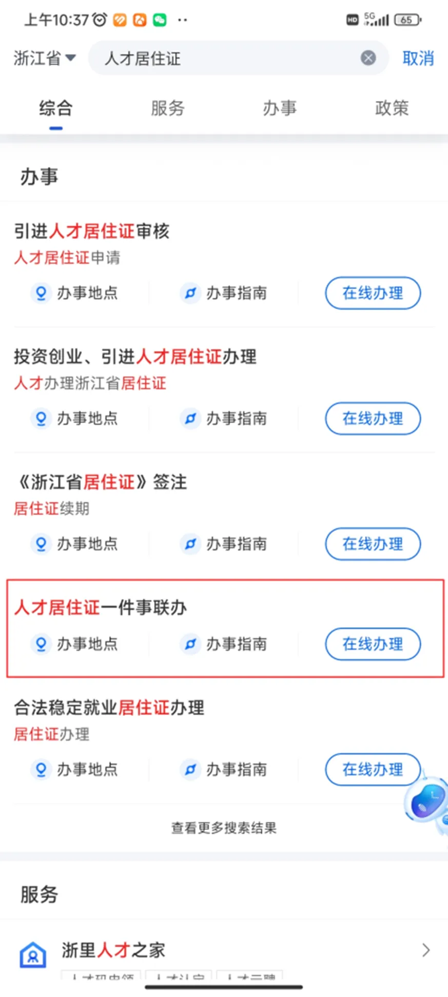 选择“人才居住证一件事联办”事项在线办理。