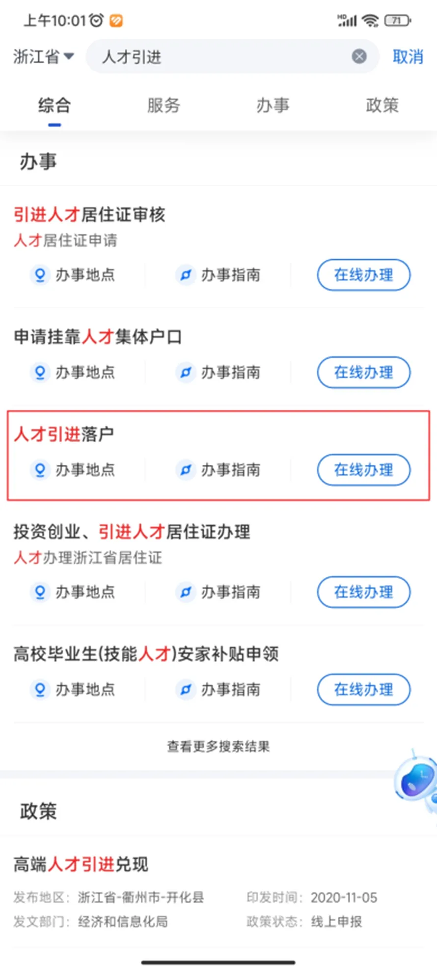 选择“人才引进落户”进行在线办理