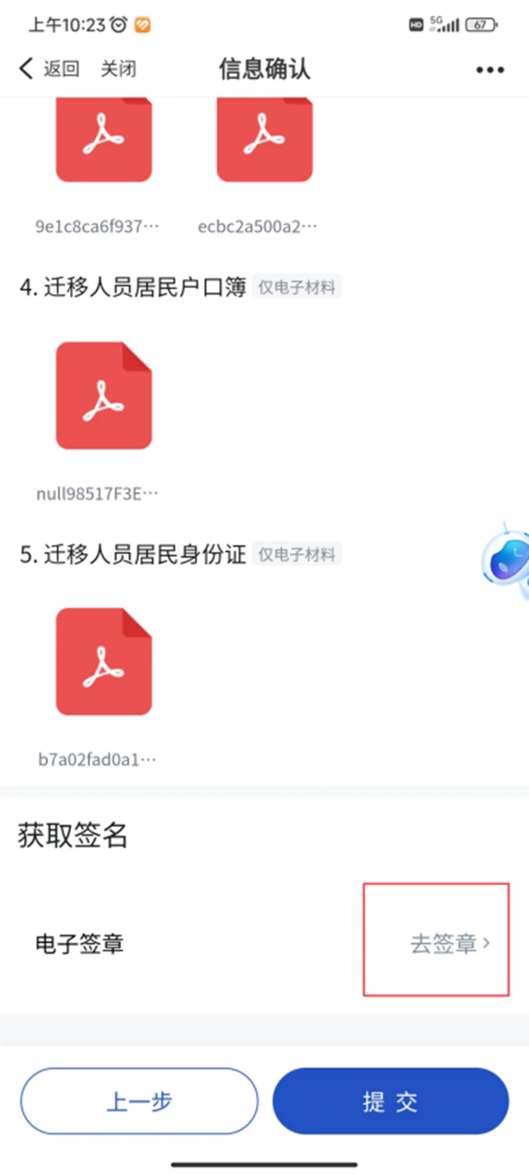 点击“去签章”完成名字签署后,提交申请。