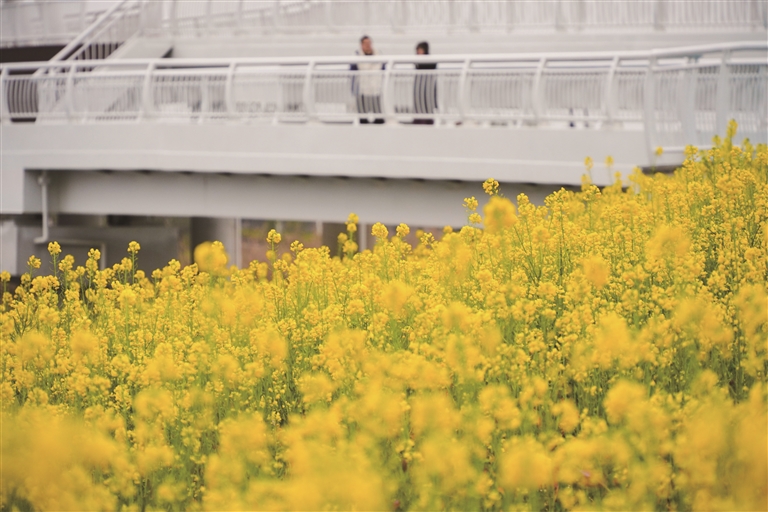 近日,钱塘区东沙湖公园西侧,50余亩早熟油菜竞相绽放、满目金黄,构成一幅江南春早的美丽画卷,吸引不少市民纷至沓来,徜徉花海。据悉,这片油菜花比一般品种的油菜开花时间提前了一个月左右。