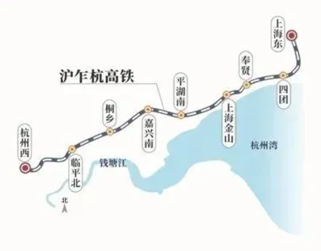 2024年沪苏湖高铁开通,从杭州西站出发可以到达上海松江、上海虹桥等站。此外,杭州西站还有一条规划中的高铁,建成后可直达上海东站。这条高铁就是计划今年开工建设的沪乍杭高铁。