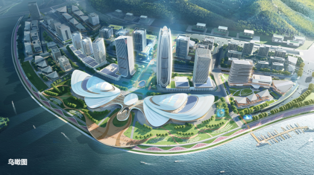 青山湖国际科创中心项目共分为A、B、C、D、E、G01、G02共7个板块,涵盖商务办公、高端酒店、会展中心、多功能剧院、图书馆、博物馆、超高层等业态,在设计上以山为幕,以水为台,其中主体结构采用蝴蝶造型,意为化茧成蝶、蝶舞青山。