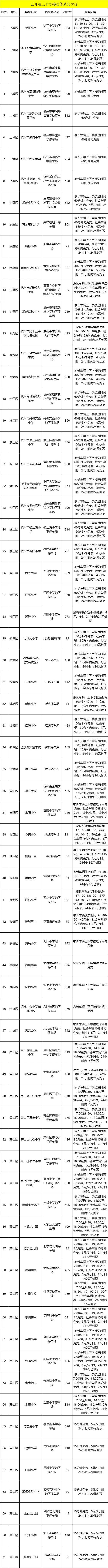 此外,全市71处学校停车场已开通上下学停车接送体系,家长车辆上下学期间享受减免优惠。具体详见下图: