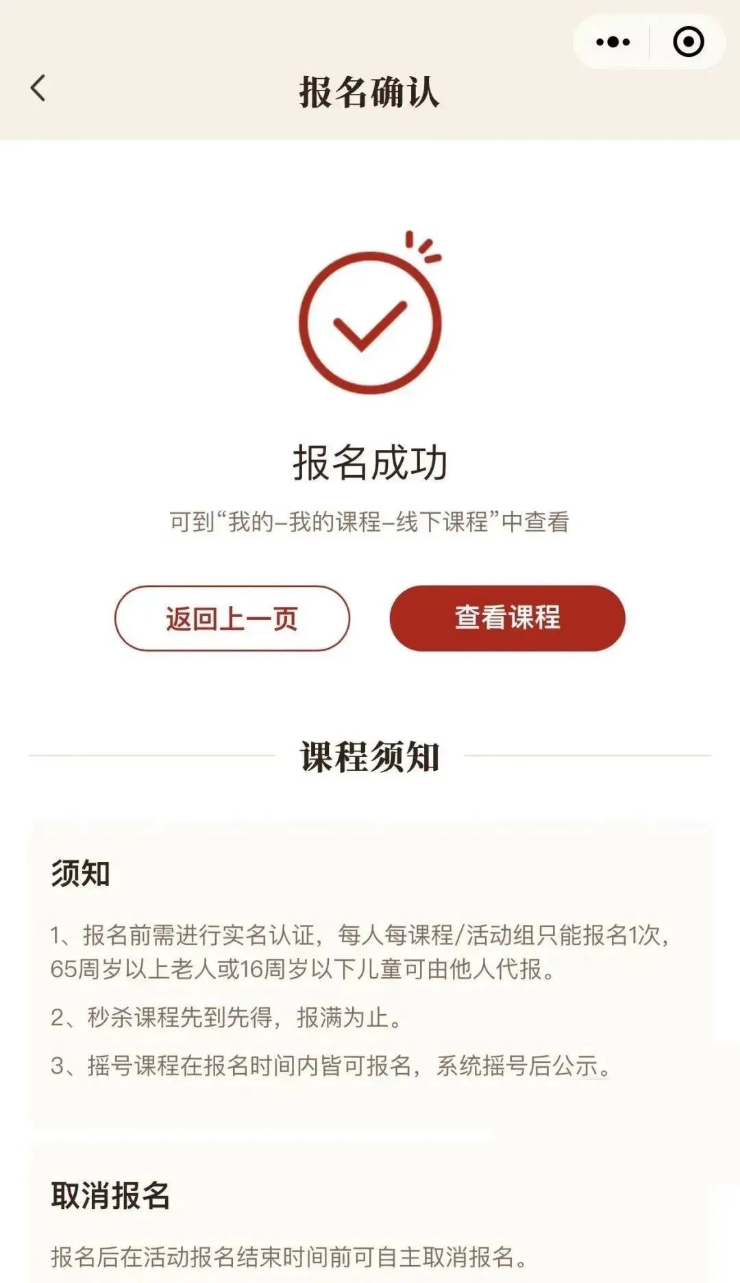 3. 课程报名摇号开启之前,学员可在小程序内自主取消课程报名且不受任何影响;摇号结束后,如取消课程,则无法参与2025年度夏季课程报名,后续解除报名限制。
